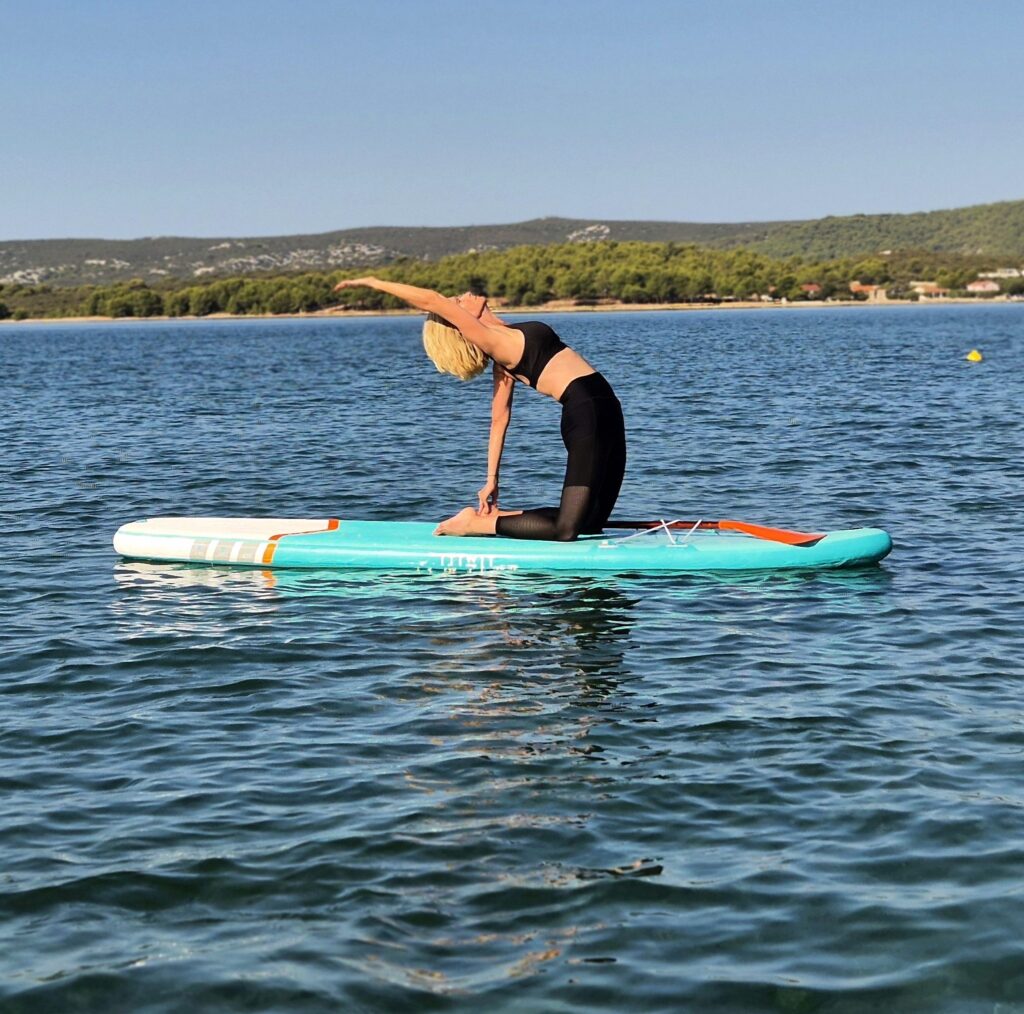 Emiatt vonzott a sup jóga is, mert fókuszban van számomra az egyensúly megtalálása, a jógán keresztül is. Mindig csodálattal néztem a sup jógás képeket, és éreztem a fotókon keresztül is, hogy micsoda egyensúlyozást, koncentrációt igényelhetnek még azok az ászanák is, amelyek a földön már könnyedén mennek.